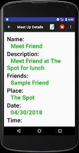 Meet Up is an app that allows you to keep track of your Friends, Family, Places, and Meetings.