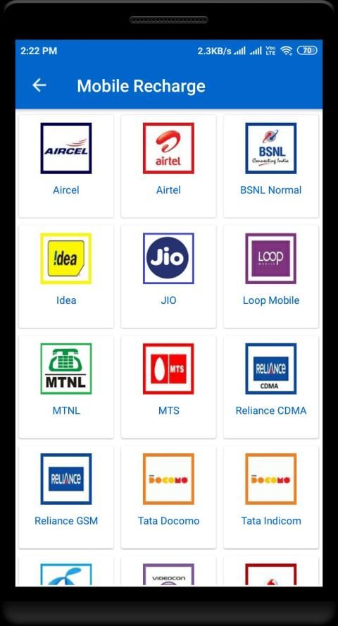 Airtel, JIO, Tata Docomo, Aircel, BSNL, IDEA, T24, Vodafone के लिए सरल और तेज़ मोबाइल रिचार्ज ऑनलाइन ...