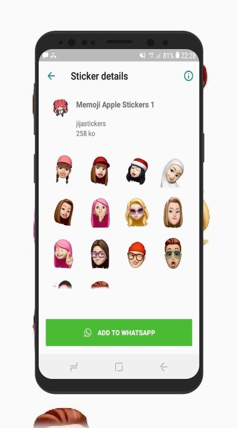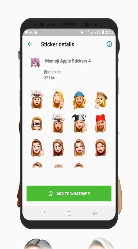 This app contains a large collection of packs of Memoji Apple Stickers for WhatsApp. WAstickerapps Memoji Android for WhatsApp stickers collection, with many different stickers set. Now express yourself using awesome Memoji Apple Stickers with WAStickerApps like iPhone X.