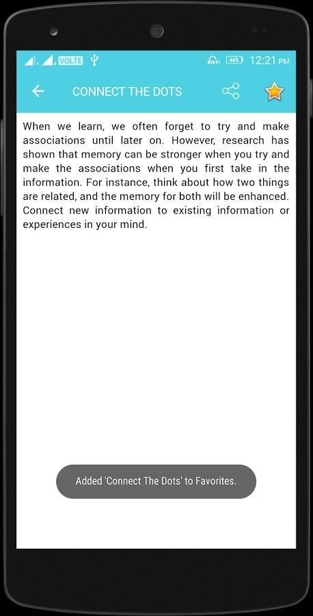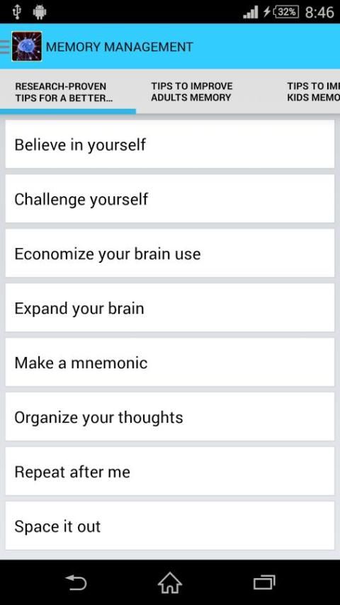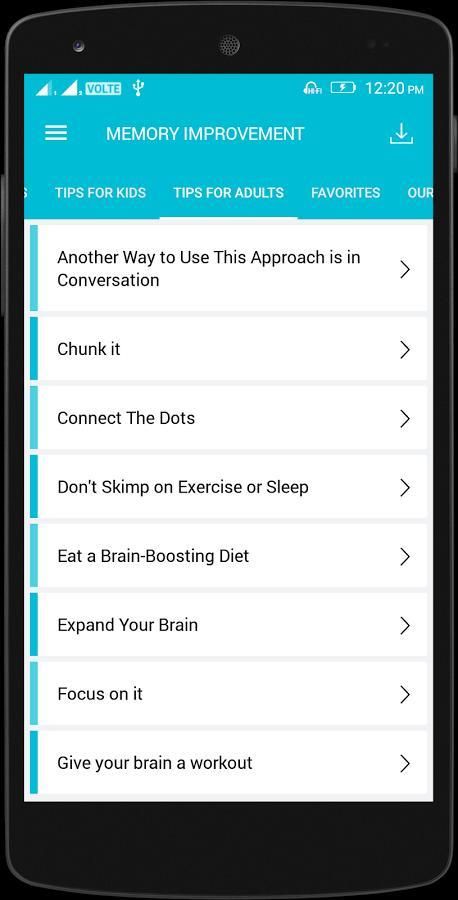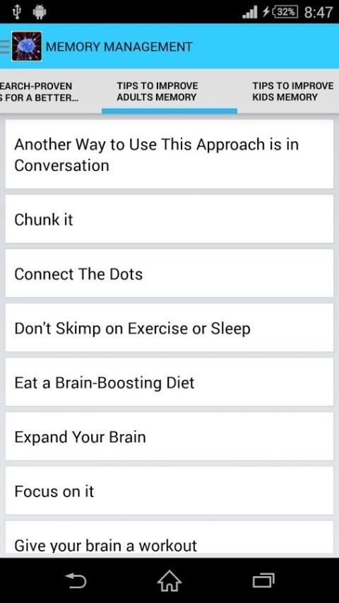 शुरू करने के लिए एक महान जगह इस app एक कोशिश मिलता है. यह तुम एक सबसे अच्छा स्मृति तकनीकों को परिचय के रूप में अच्छी तरह से अपने मस्तिष्क के स्वास्थ्य में सुधार के लिए तरीके प्रदान करता है.