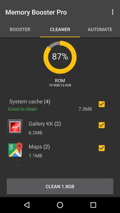 सबसे अच्छा क्लीनर उपकरण है जो आप कभी भी एंड्रॉयड में मिल जाएगा। तुम्हारे पास है, तो फिर कुछ भी नहीं एंड्रॉयड डिवाइस है कि सफ़ाई के योग्य है में छोड़ दिया है। यह क्लीनर कुछ भी और सब कुछ साफ कर सकते हैं। यह भी स्क्रीन पर गंदगी साफ कर सकते हैं;)। आप एक पूर्ण स्वच्छ बाद सभी मुक्त स्मृति देख कर हैरान हो जाएगा।