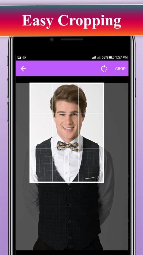 मेन सूट फोटो एडिटर का उपयोग करते हुए, पहले एचडी फोटो या एक सेल्फी लें या गैलरी से फोटो चुनें। इसे जिस तरह से आप चाहते हैं उसे काटें और फिर सूट के विस्तृत संग्रह से पुरुषों के सूट का चयन करें और एक वास्तविक व्यवसायी की तरह अपनी तस्वीरों का निर्माण करें।
