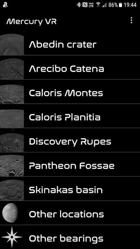 यह गूगल कार्डबोर्ड एप्लिकेशन आपको बुध ग्रह के लिए यात्रा करते हैं और यह वी.आर. में सतह है पता लगाने के लिए अनुमति देता है। एक लैंडिंग साइट का चयन करें और फिर एक बार आप सतह तक पहुंच क्या आप छोड़ दिया सिर झुकने और उड़ान की दिशा बदलने के लिए आप सही से तलाश कर सकते हैं। ऊपर और नीचे देख रहे हैं अपने ऊंचाई बदल जाएगा और सेटिंग्स में आप आप आगे नेविगेट करने में मदद करने के लिए एक सिर अप डिस्प्ले सक्षम कर सकते हैं।