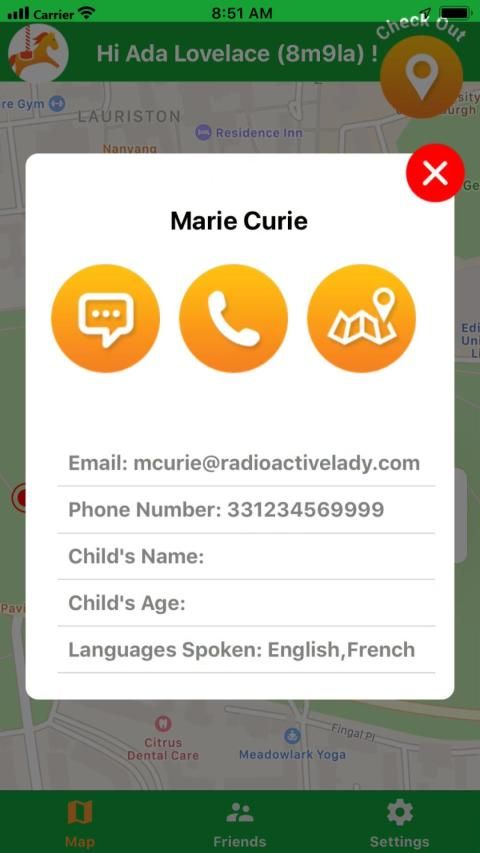 * नक्शे या सूची से सीधे पास के दोस्तों को पाठ या कॉल करें