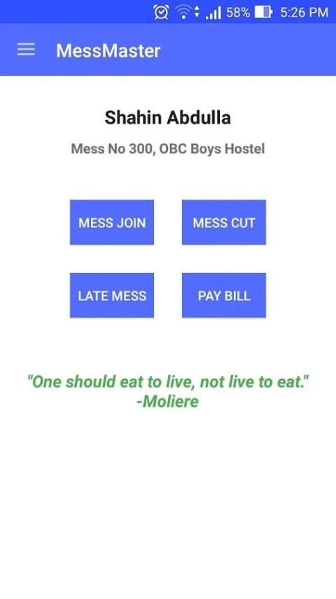 MessMaster Android app is introduced to simplfy hostel mess management technically. This app is meant for CUSAT hostels.