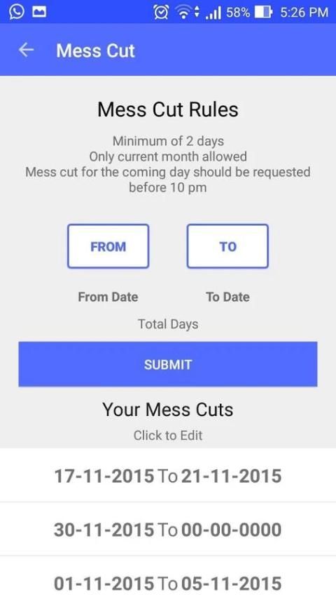 MessMaster एंड्रॉयड एप्लिकेशन को तकनीकी रूप से छात्रावास गंदगी प्रबंधन simplfy करने के लिए शुरू की है। यह एप्लिकेशन CUSAT हॉस्टल के लिए है।