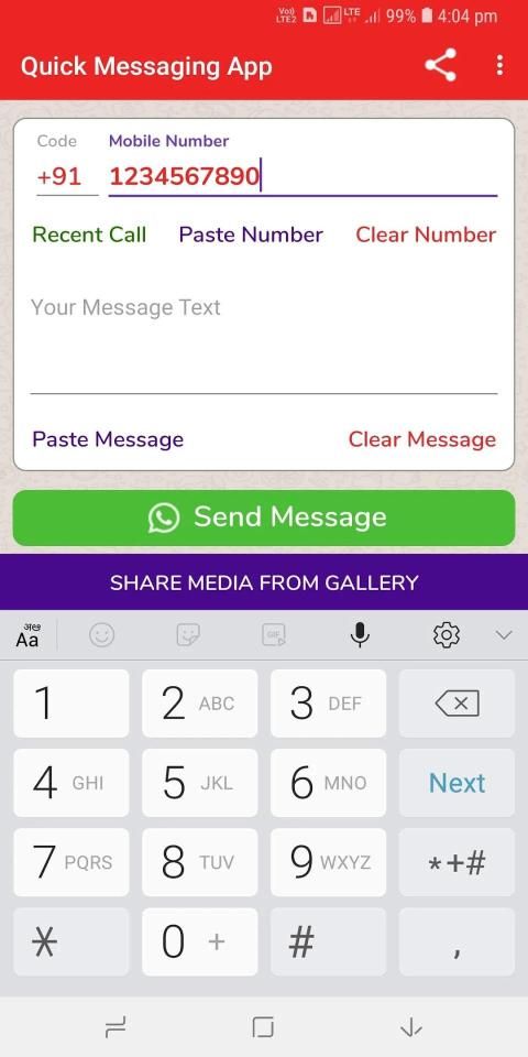 - Send WhatsApp message direct to any number without saving contact.
