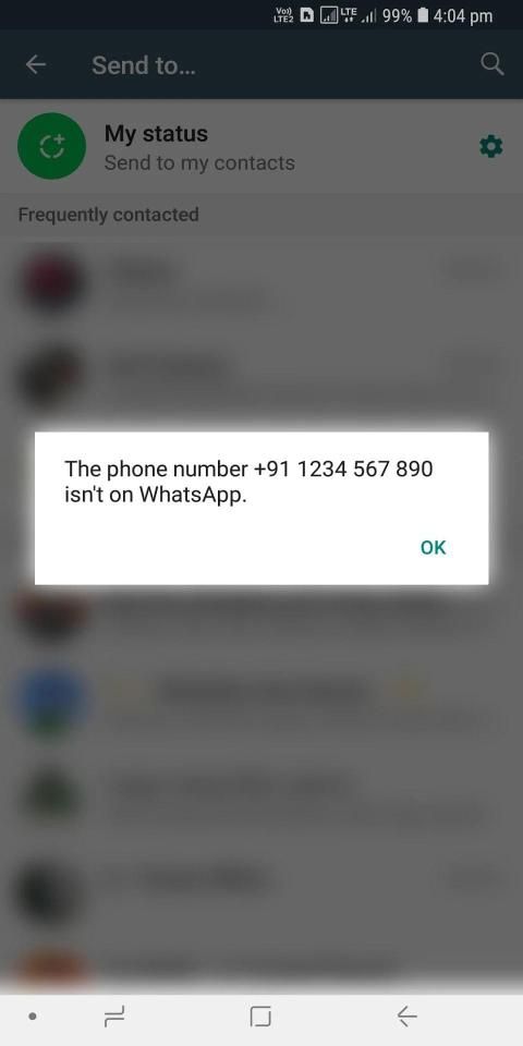 • WhatsApp will notify you if number is not found on WhatsApp.