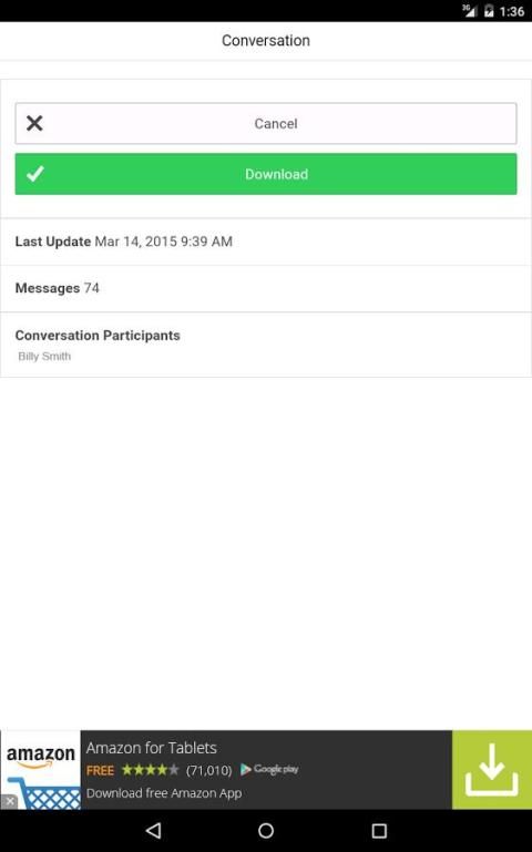 मैसेंजर बैकअप आप फेसबुक मैसेंजर से संदेश धागे को डाउनलोड करने और एक सीएसवी (अल्पविराम से अलग मूल्य) फ़ाइल में उन्हें स्टोर और ईमेल के माध्यम से इसे साझा या गूगल ड्राइव ™ पर अपलोड करने की अनुमति देता है।
