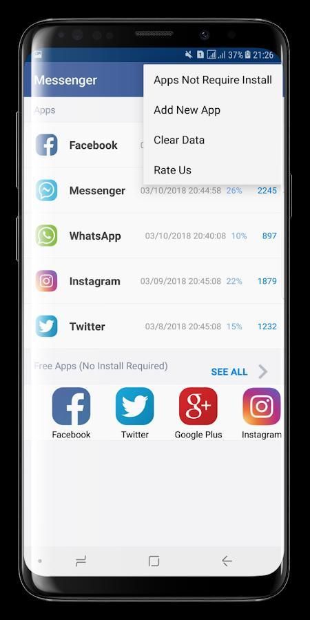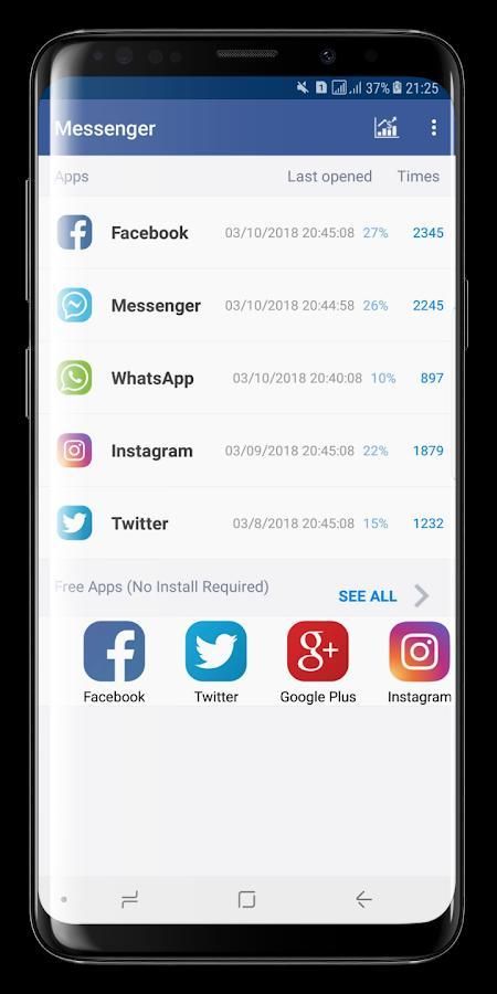 * सरल चार्ट, दूत दिखा सामाजिक मीडिया संदेश, फोन और वीडियो कॉल ऐप्लिकेशन (ऐप्लिकेशन काउंटर) का उपयोग करें। वास्तविक समय में आंकड़े।