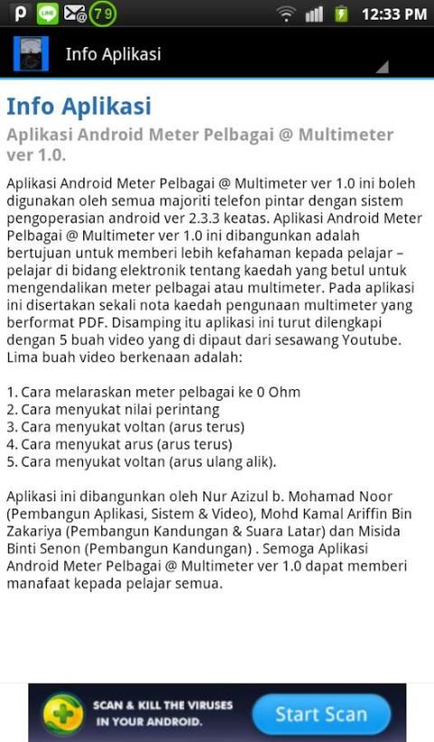 इन आवेदनों नूर Azizul बी द्वारा विकसित कर रहे हैं. मोहम्मद नूर (अनुप्रयोग डेवलपर्स, सिस्टम और वीडियो), मोहम्मद कमल Ariffin बिन ज़कारिया (सामग्री डेवलपर्स और गायन) और Misida Binti Senon (डेवलपर सामग्री). 1.0 वर्जन मल्टीमीटर मल्टी मीटर @ उम्मीद है कि Android अनुप्रयोगों के सभी छात्रों के लिए फायदेमंद हो सकता है.
