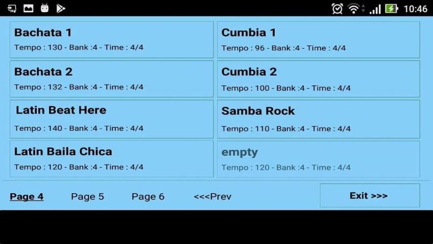 - 12 Sections of rhythms with possibility to upload up to 24 rhythms for each section