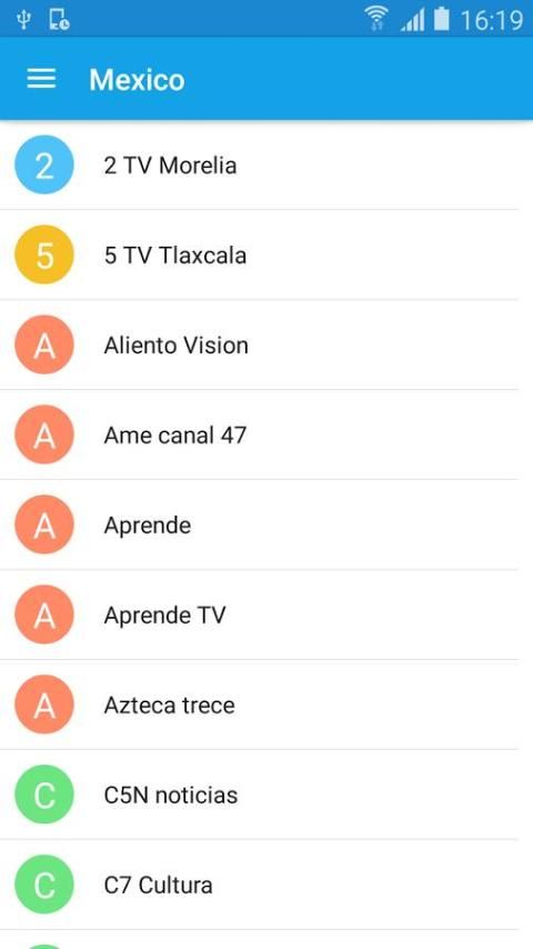 यह आवेदन मेक्सिको में लगभग टीवी चैनल शामिल