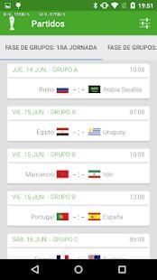 - Partidos según tu zona horaria.