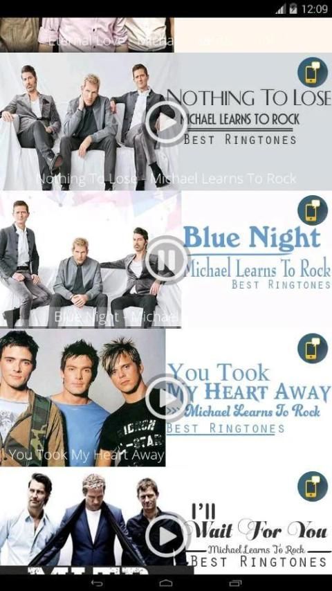 Michael Learns To Rock - Best Ringtones tổng hợp những bài nhạc chuông của Michael Learns To Rock hot nhất trong thời gian gần đây nhất. được chúng tôi cập nhật liên tục - Michael Learns To Rock - Best Ringtones hứa hẹn mang đến sự khác biệt, phong cách riêng tức thì cho chiếc điện thoại của bạn.