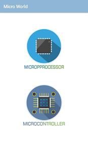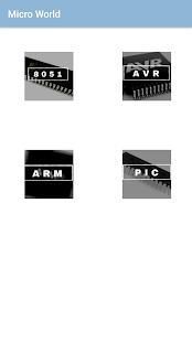 The app contains sample projects and information regarding types of microprocessors and microcontrollers.