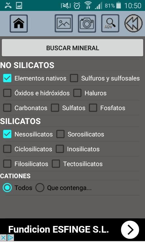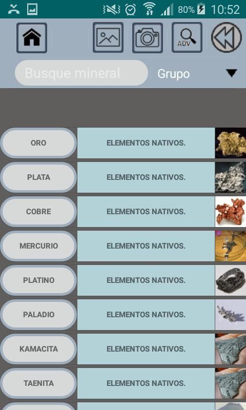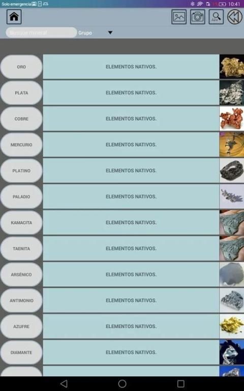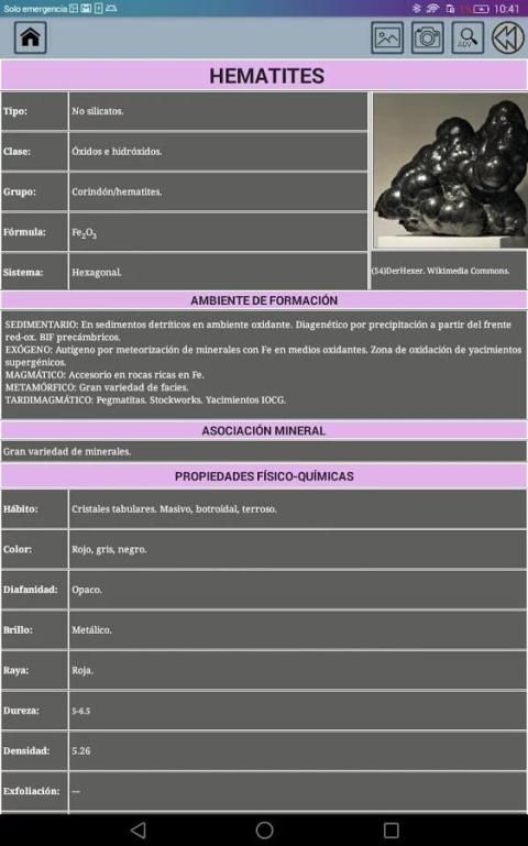 प्रत्येक खनिज टैब प्रत्येक खनिज की मुख्य विशेषताओं के साथ-साथ एक तस्वीर भी शामिल है।