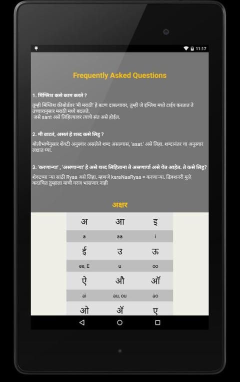 शब्दकोश साथ मराठी लिप्यंतरण का समर्थन करता है कि एंड्रॉयड में पहली कीबोर्ड।