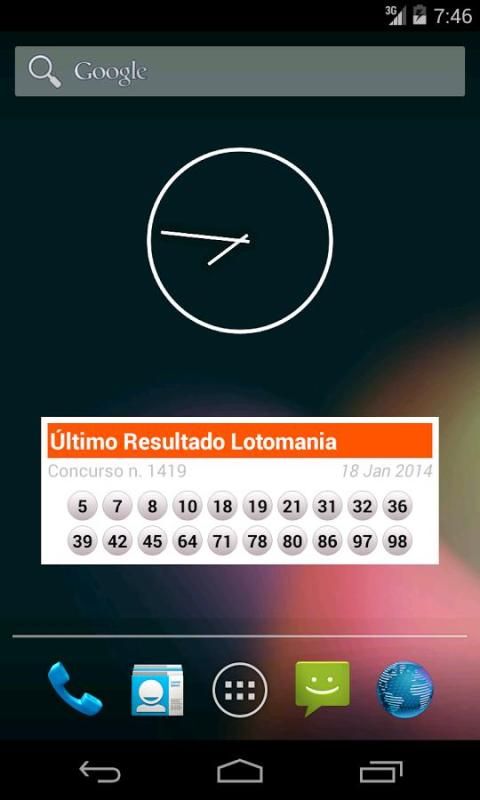 - Lotomania का अंतिम परिणाम के साथ विजेट;