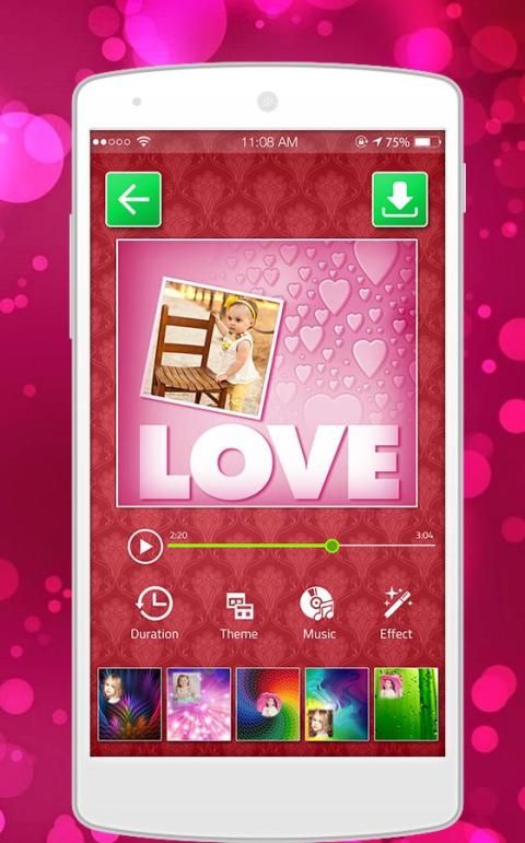 स्लाइड समय, फ्रेम और फिल्टर प्रभाव। सुंदर संगीत स्लाइड शो बनाने और दोस्तों के साथ साझा और