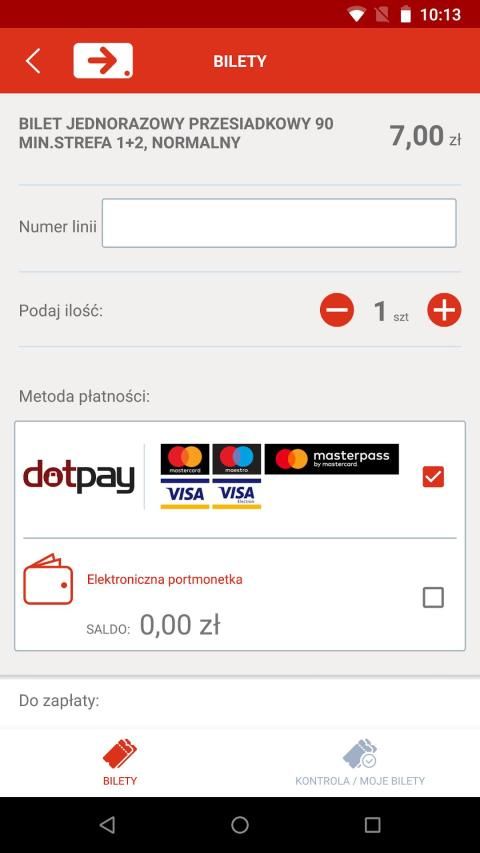 - Doładowanie elektronicznej portmonetki aby kupować bilety jeszcze szybciej