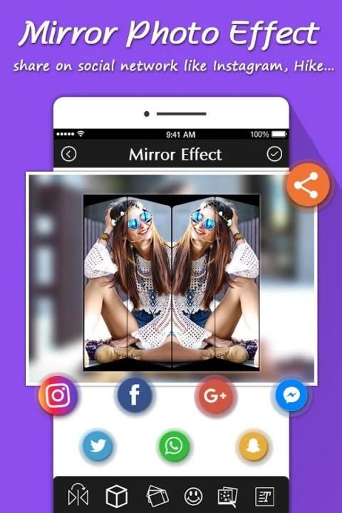 मिरर फोटो प्रभाव एप्लिकेशन का उपयोग करने के लिए एक आसान और सशक्त फ़ोटो संपादक और फोटो कोलाज है! बेतरतीब ढंग से, दर्पण प्रभाव लागू फ़िल्टर कर प्रभाव और अद्भुत तस्वीरें बनाएँ।