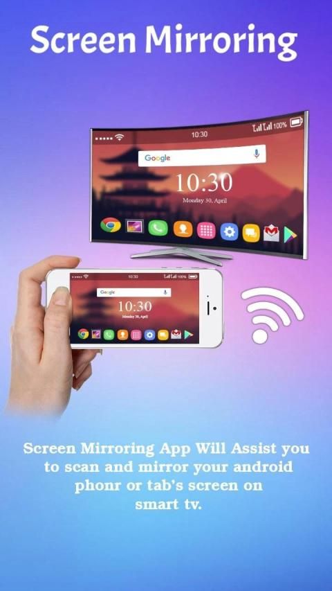 Screen Mirroring with TV - Mirror Screen App will assist you to scan and mirror your android phone or tab's screen on smart TV/Display or Wireless dongles or adapters.