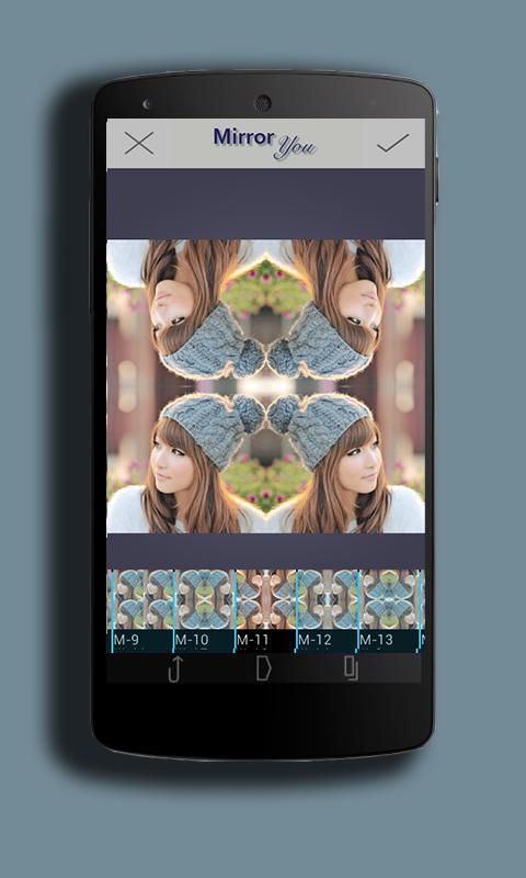 Mirror you lets you create Inward Mirror,Outward Mirror, Upside Down Mirror Effects, Plus many Mirror You have Combos of Four Photo apply more than 20 beautiful photo effects.