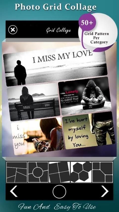 -> मिस आप फोटो कोलाज़ आप विभिन्न फ्रेम पैटर्न और फोटो ग्रिड के साथ कई तस्वीरें गठबंधन फिर एक समय में उन्हें साझा मदद करता है!
