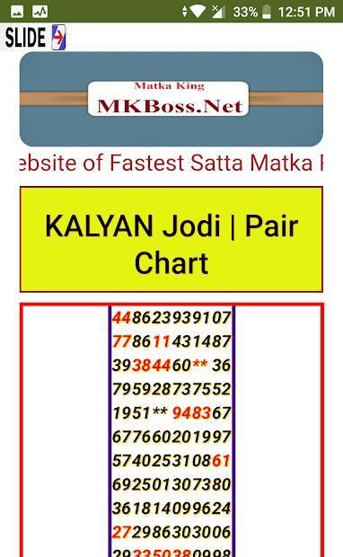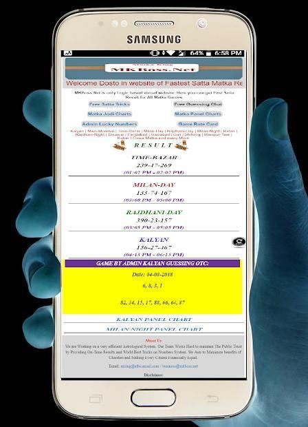 App Includes: Kalyan Satta Matka Chart | Kalyan Jodi Chart | Kalyan Jodi Record | Kalyani Chart | Kalyan Satta Chart | Kalyan Game | Matka King Chart | Mkboss Kalyan | Matka King Chart | aaj ki Jodi | Matka Jodi Number | Kalyan Pair Chart | Kalyan Satta Live Chart | Matka Live Number and games are Kalyan | Main-Mumbai | Time-Bazar | Milan-Day | Rajdhani-Day | Milan-Night | Ratan | Rajdhani-Night | Disawar | Faridabad | Gaziabad | Gali | Shillong | Manipur-Teer | Kuber | Gowa Matka and many More.