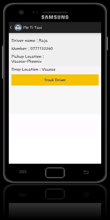 वाहन सूचना: उपयोगकर्ता इस तरह के और मॉडल, रंग, यात्रियों की अधिकतम संख्या, और दर प्रति किलोमीटर के रूप में वाहन जानकारी देख सकते हैं अगर यह एक टैक्सी है।