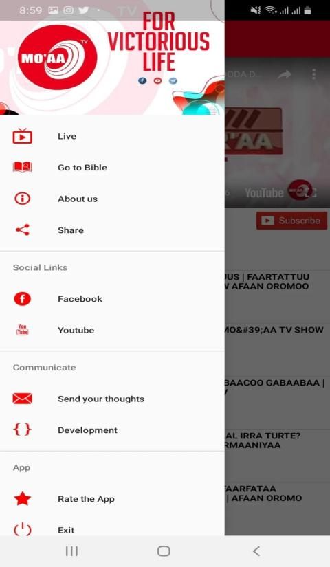 - Get in a link to social medias of Mo'aa TV: Youtube, Facebook.