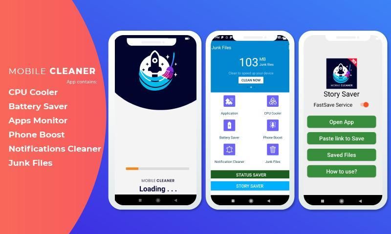 Mobile Cleaner is a small, fast, and smart Android device Speed Booster, Junk Cleaner, Battery Saver and performance booster. This mobile cleaner app is the best Helper for Accelerate and Clean Up your Android device and app has been designed for you to solve your problem of getting your mobile hanged all the time, and especially when you want free up memory, and get rid of junk files.