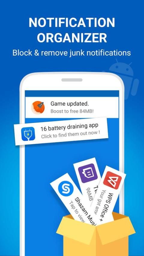 अधिसूचना आयोजक - ब्लॉक और कबाड़ सूचनाएं हटा दें। कभी महत्वपूर्ण सूचना से वंचित।