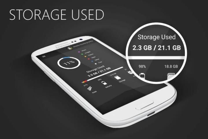 संग्रहण प्रदर्शन - चित्र, वीडियो, संगीत, आवेदन पत्र सहित एक पूर्ण भंडारण, और अन्य फाइलों फ़ाइलों को हटाने के लिए विकल्पों के साथ प्रदर्शित किया जाएगा। हर फाइल मोबाइल सफाई उपयोगिता अंदर से देखी जा सकती है, कोई प्रारूप में कोई फर्क।