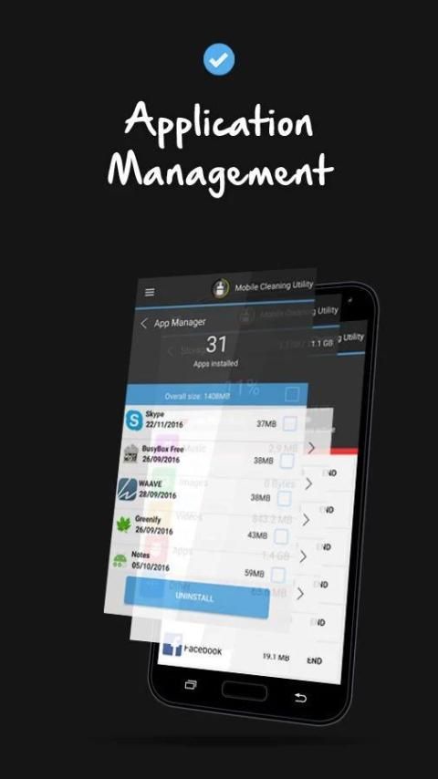 आवेदन प्रबंधन - विकल्प फोन पर स्थापित आवेदन के सभी चलता। सफाई उपयोगिता मोबाइल आप अपनी पसंद के हिसाब से उन्हें प्रबंधन और एक स्पर्श के साथ उन्हें रद्द करने के लिए अनुमति देता है।