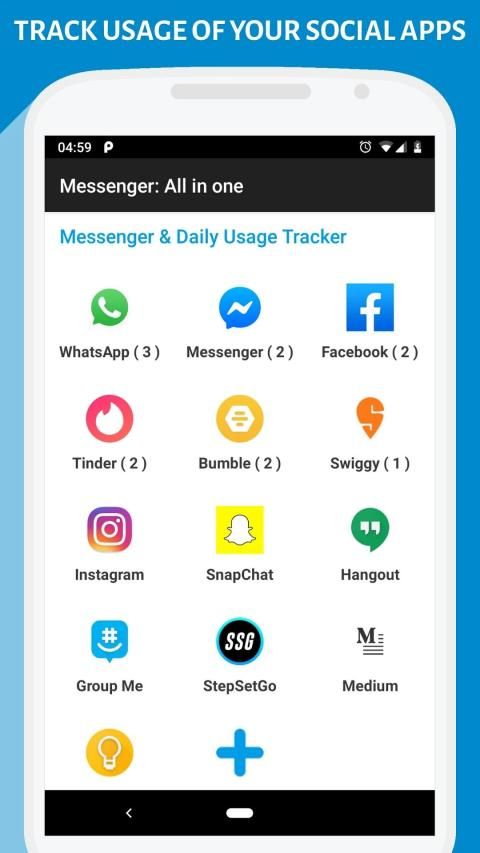 The Free Messenger app will help all users open their popular messenger & Social Media applications and track daily app usage counts.