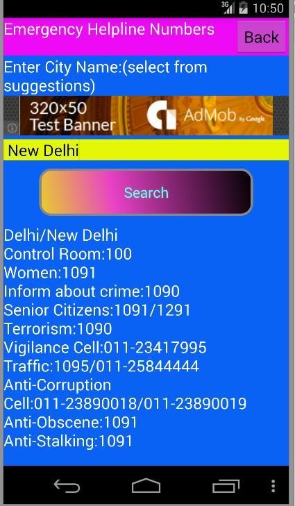 इसके अलावा अद्यतन स्थानीय हेल्पलाइन नंबर के साथ पूरे भारत के प्रमुख शहरों आपातकालीन हेल्पलाइन नंबरों गयी.