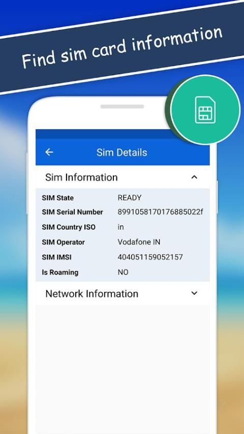 सिम राज्य, सिम सीरियल नंबर, सिम देश, सिम ऑपरेटर नाम, सिम IMSI नंबर की तरह अपने डिवाइस के सिम विवरण प्राप्त करें।