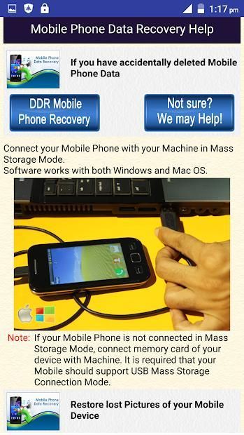 Mobile Phone Data Recovery Help is a Free App that guides you to restore your deleted pictures or erased Files Photos Videos Images and other lost data from Cell Phone internal storage or memory Card of your mobile using DDR mobile Data Recovery Software.