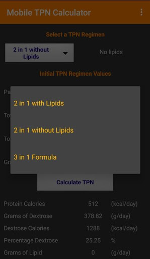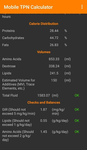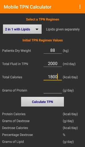 मोबाइल टीपीएन कैलकुलेटर को टीपीएन ऑर्डर तैयार करने में पंजीकृत आहार विशेषज्ञों की सहायता के लिए डिज़ाइन किया गया है। यह आहारियों को रोगी के राउंड या पीसी से दूर होने पर टीपीएन रेजिमन गणना करने का एक आसान तरीका देता है।