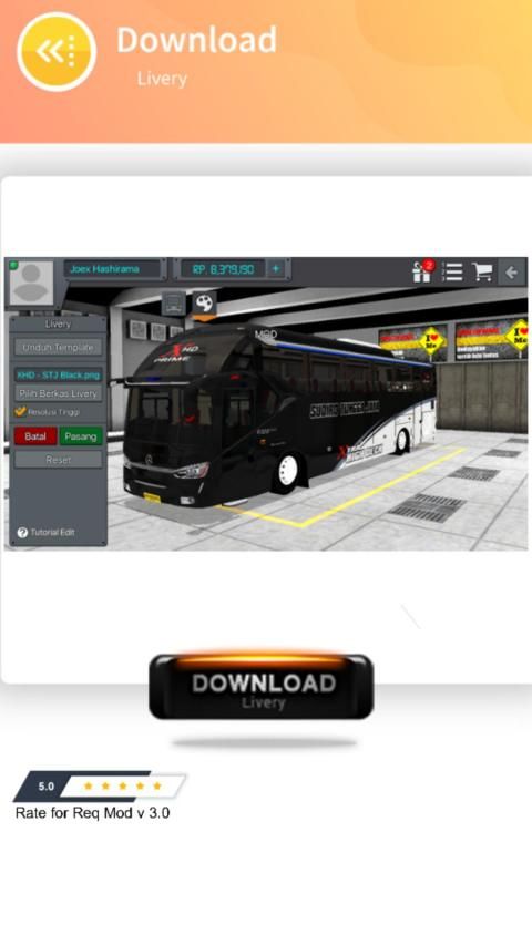 => Download terlebih dahulu mod livery yang telah tersedia dibagian kanan atas aplikasi.