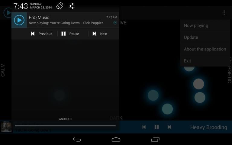 आवेदन अपनी डिवाइस पर और आधार तत्संबंधी प्लेलिस्ट उत्पन्न करता है पर संगीत फ़ाइलों का विश्लेषण करती है।