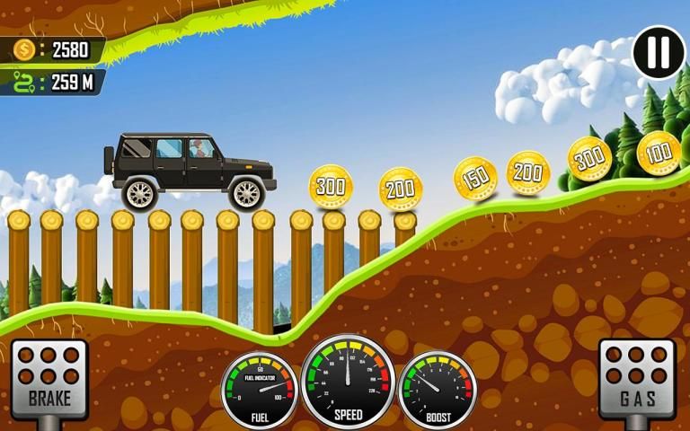 - रेसिंग कार के लिए स्क्रीन पर पहाड़ी रेसिंग नियंत्रण का उपयोग करें