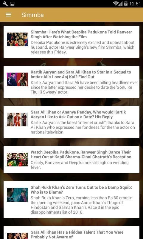 इस एप्लिकेशन को सिम्म्बा फिल्म के लिए बनाया गया है! आपको फिल्म और इसके सभी पात्रों के बारे में पूरी जानकारी मिल जाएगी।