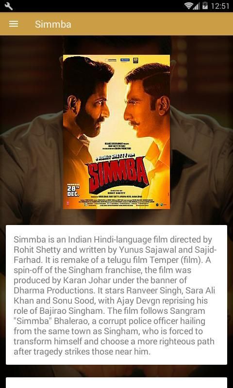 This app has been created for the Simmba movie! You will get complete details regarding the movie and all of its characters here.