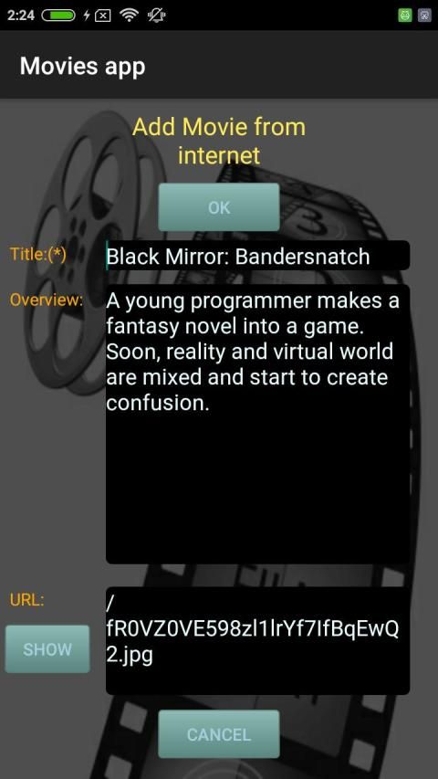 एक ऐप जो मूवी की जानकारी प्रदर्शित करता है