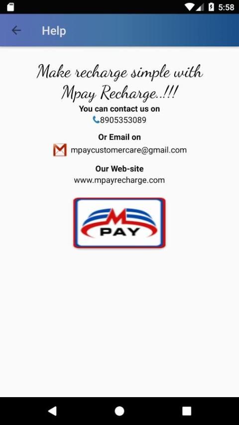 Mpay पुनर्भरण मोबाइल, डीटीएच, पोस्टपेड, डेटा कार्ड की शेष राशि स्थानांतरण की तरह रिचार्ज के सभी प्रकार करने के लिए इस्तेमाल किया जा सकता।