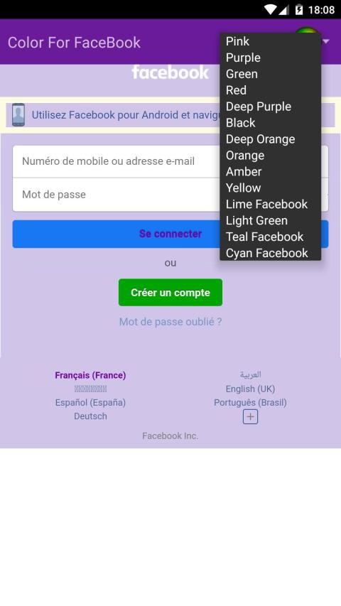 इस एप्लिकेशन के माध्यम से मुफ्त में फेसबुक का रंग बदलने के लिए अद्भुत विकल्प प्राप्त करें।