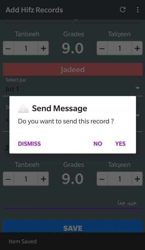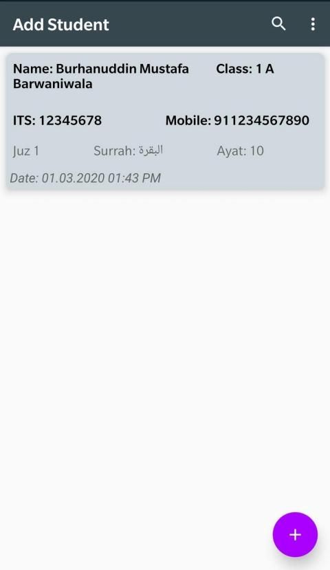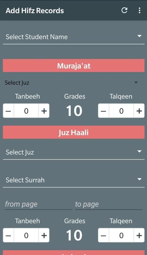 This application has been developed for keeping records of Students doing Hifz ul Quran by their Muhaffiz. A Muhaffiz can maintain records of any number of students and their records can be shared via WhatsApp or Email with parents on daily basis.
